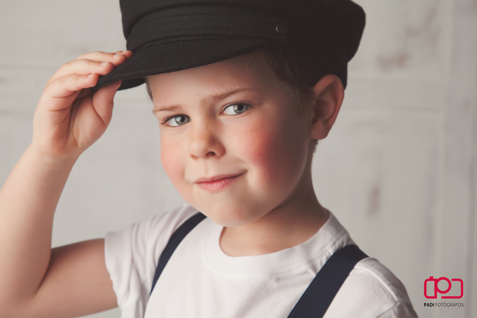 Empezamos la sesión con Pablo,que me estuvo enseñando los diferentes dinosaurios y si eran herbívoros o carnívoros y lo que medían.El gorro de marinero era de su abuelo y le quedaba genial,con los tirantes y su camiseta pintada a mano,le daba un rollo muy vintage muy molón.
