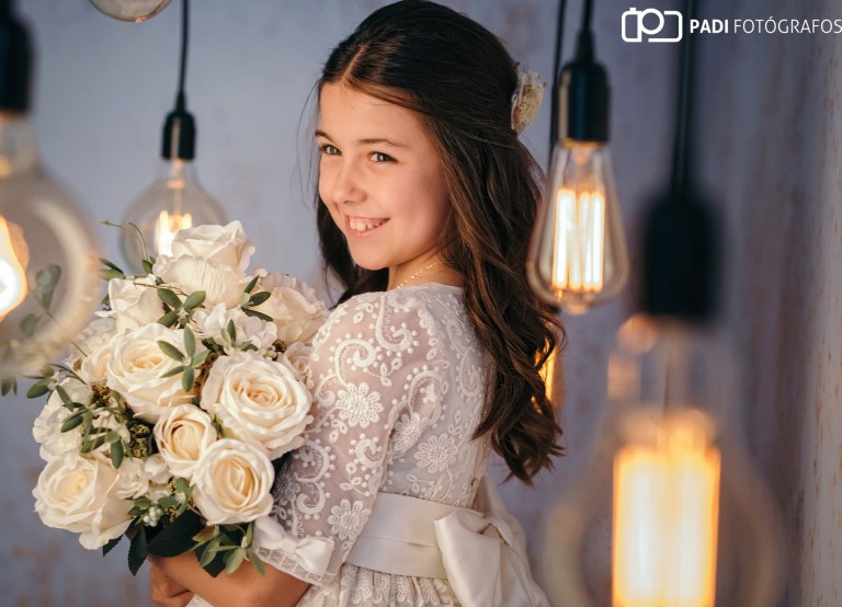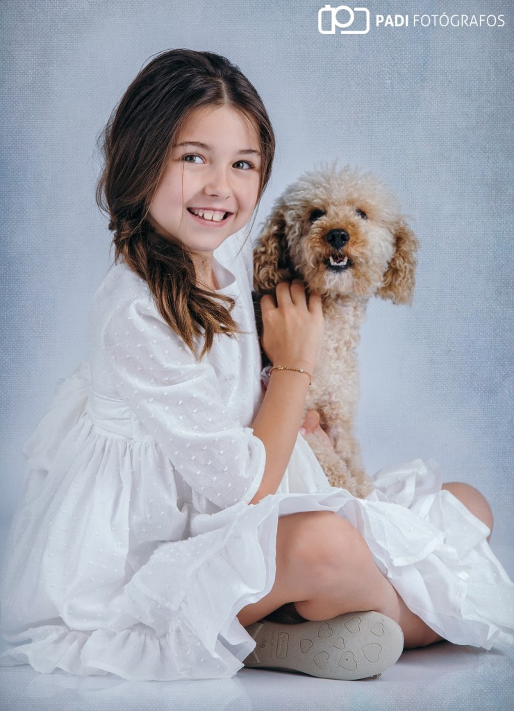Para las fotos de comunión Fany lo tenía muy claro,quería traerse a Paco,el perro de su tía porque quería hacerse fotos con él,y por supuesto Paco posó de categoría!