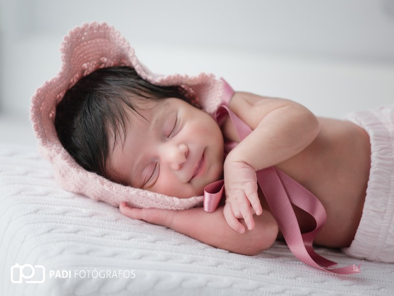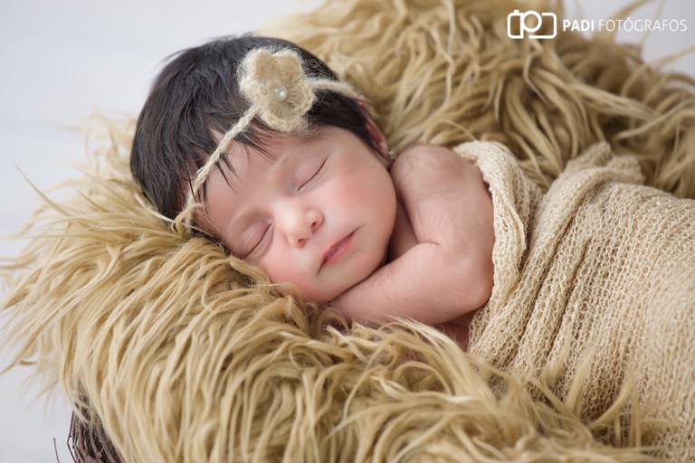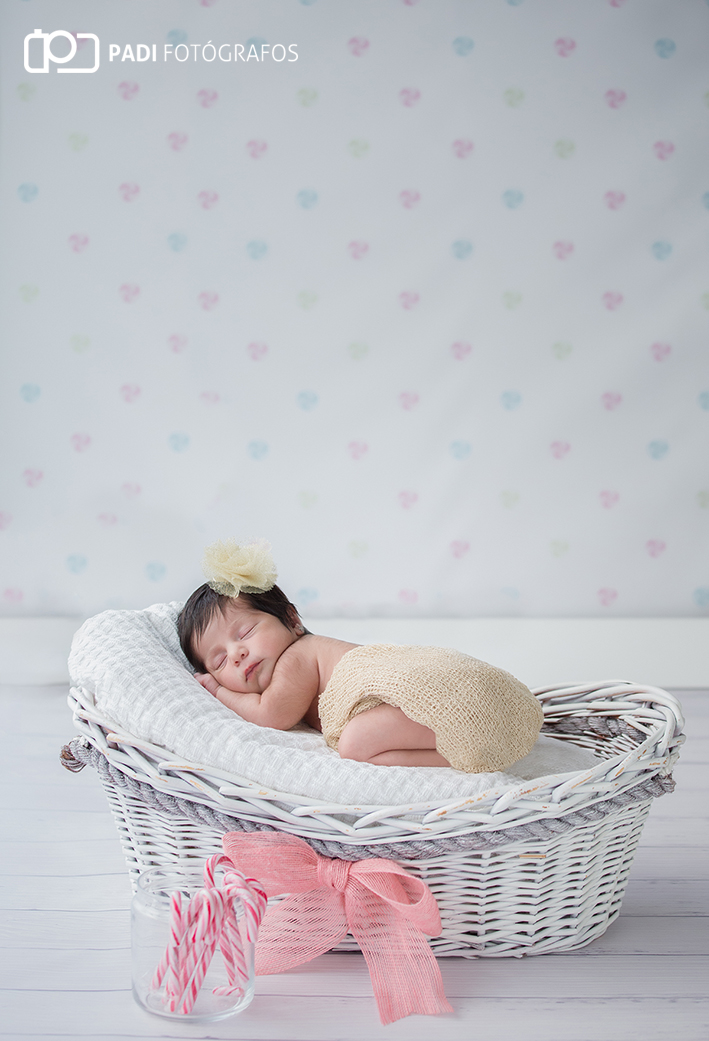 Para las fotos del bebé Amaia las hicimos en el estudio y ella se portó superbien,con sus escasos diez días de vida.