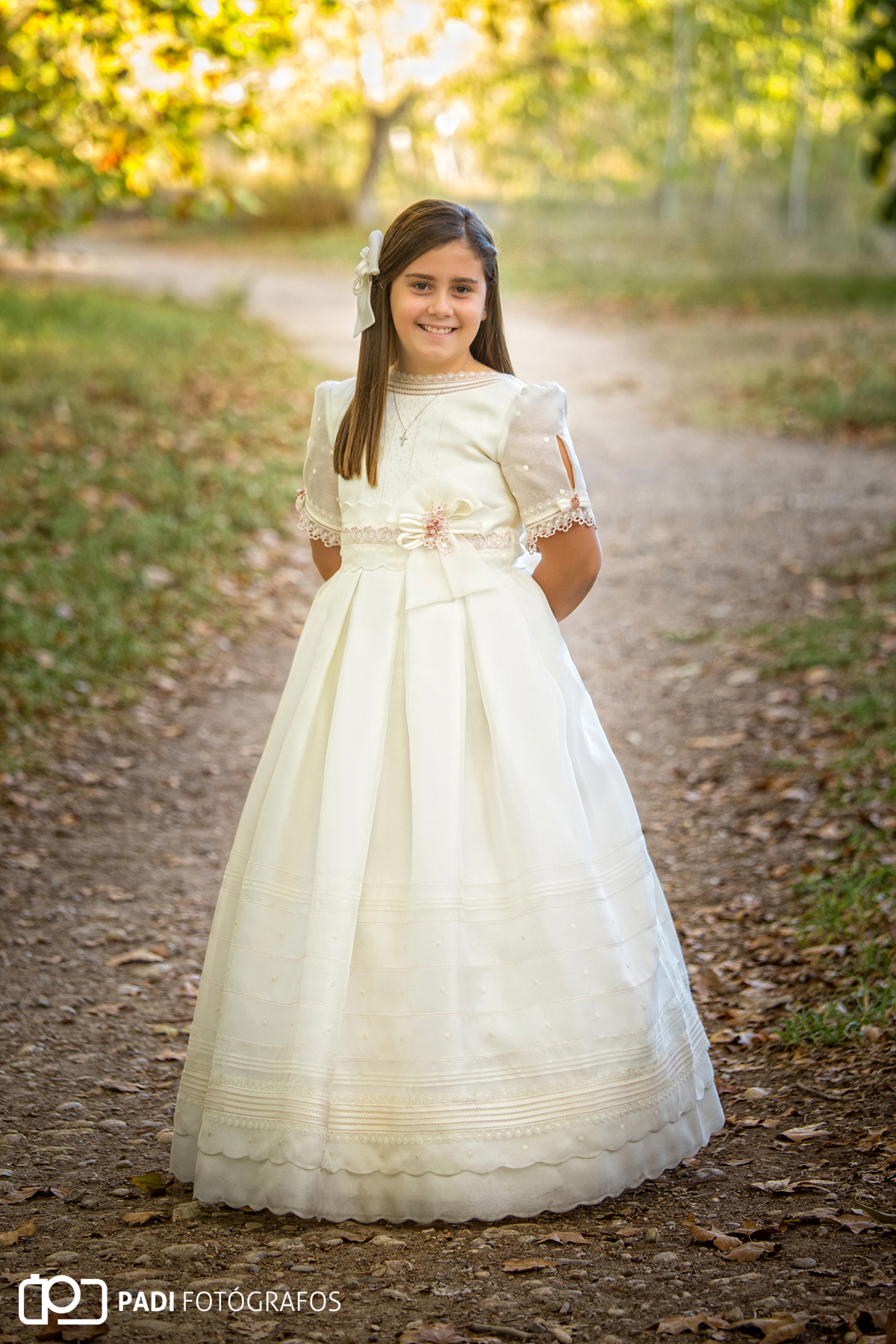 Andrea iba muy elegante,hicimos fotografías tanto en el estudio como en exteriores con el traje de comunión.