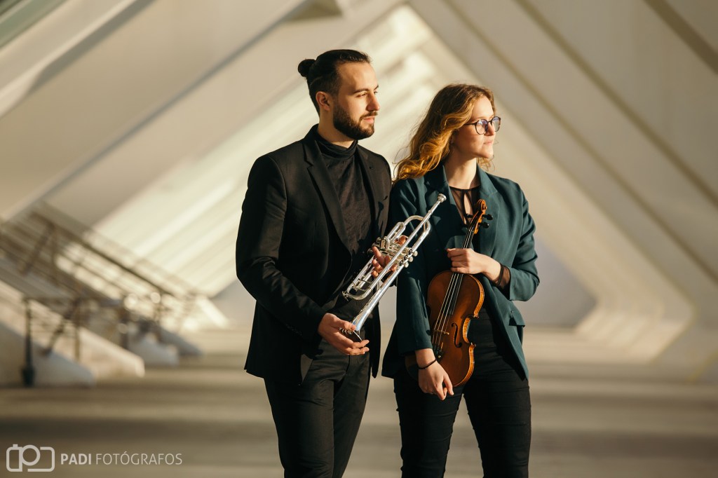 Hace unos meses estuvimos haciendo un reportaje para Eva y Carlos,violinista y trompetista respectivamente para la actualización de su book,estuvimos buscando localizaciones por el centro y ya para acabar fuimos a la CCAA,para acabar con la caída del sol y aprovechar sus tonos dorados.